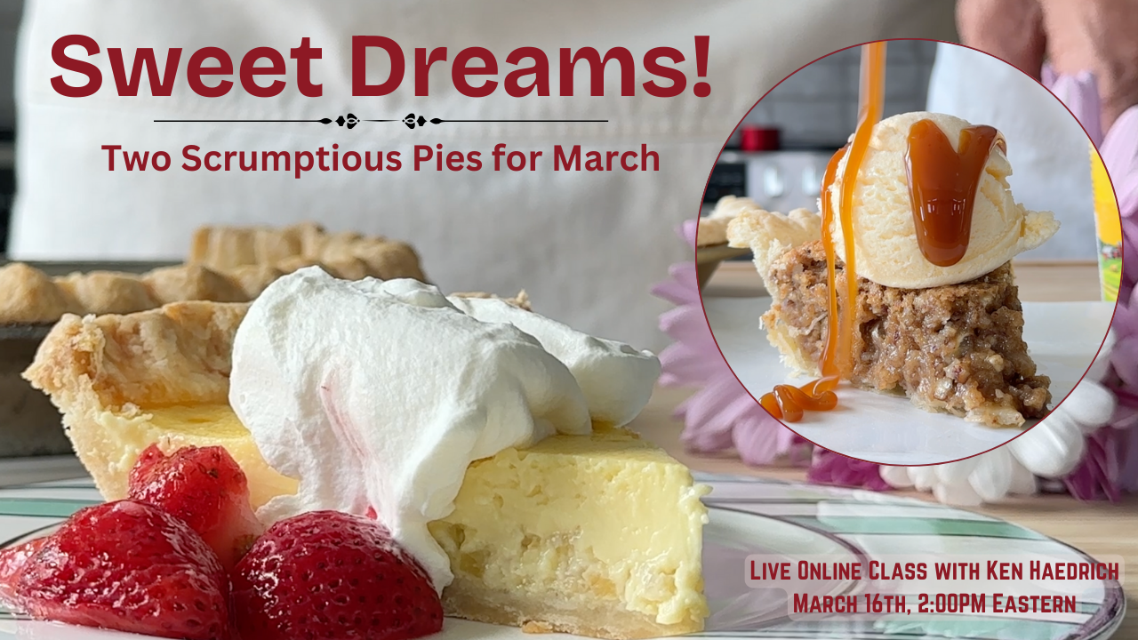 March. If ever there was an in-between month for pie bakers, March is it. But should we just stand by and let our rolling pins collect dust? Heck no, we shouldn't. We should take advantage of the moment and turn our attention to pies that don't belong to any particular season. For instance, our two featured pies in this class - a creamy Ginger & Lemon Custard Pie, like heaven in your mouth and velvet on the tongue. You'll learn all the tricks to make this...and all of your custard pies...come out perfect every time. Our other pie sounds less than lovely, but don't let a name fool you - Sawdust Pie. It's got a moist, cake-like filling with a flavor that's out of this world. It's definitely one worth adding to your regular pie rotation, funny name and all. See you in class.
