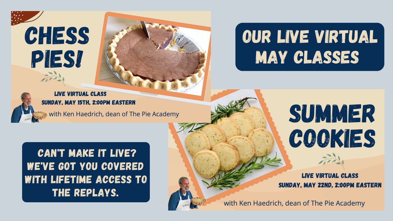 Join Ken Haedrich, dean of The Pie Academy, for this pair of live, virtual classes in May. In the first of these informative, 2-hour classes, learn how Ken creates his favorite versions of chess pies - lemon, chocolate, and blueberry-buttermilk. In the other, you'll learn how Ken leverages the summer harvest to bake two of his best cookies - Rosemary Lemon Shortbread Cookies and Strawberry-Filled Shortbread Bars. Don't miss these live classes, a bonanza of great recipes and good baking fun.