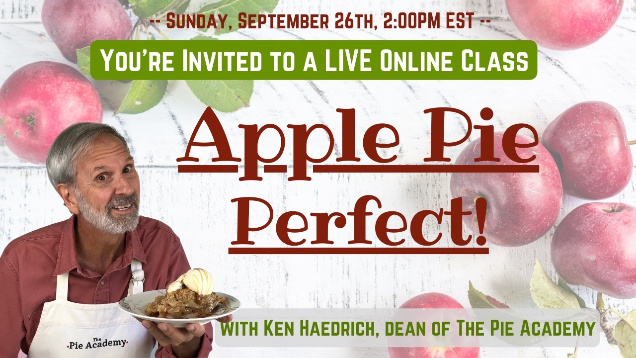 Join Ken Haedrich, dean of The Pie Academy, for this fun and instructive 2-hour live class on making the perfect apple pie. He'll show you how to make his favorite apple pie crust, talk pie apples and tools, discuss common pitfalls to apple pie perfection and answer your pressing questions in real time. If you ever wanted to up your apple pie game, this is the class for you!