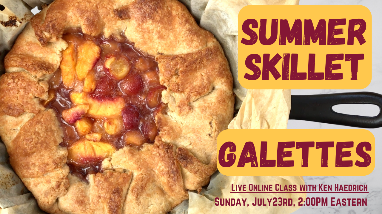 Like Ken says, summer fruit pie never gets old or boring, but it's still nice to come at it from a different angle now and then. Like when you're making Summer Skillet Galettes. A galette is pie's laid back cousin - there's no top crust, no fancy fluted edges, no hassle. Just lower the dough into your skillet, add the filling, fold over the excess dough and pop it in the oven. We'll be making two fabulous versions in this class - one blueberry, one with peaches and cherries. And as always, Ken will be sharing all his little tips and tricks so your galettes come out perfect, too. It's summer pie making at its carefree best. Thanks for joining us and we'll see you in class.