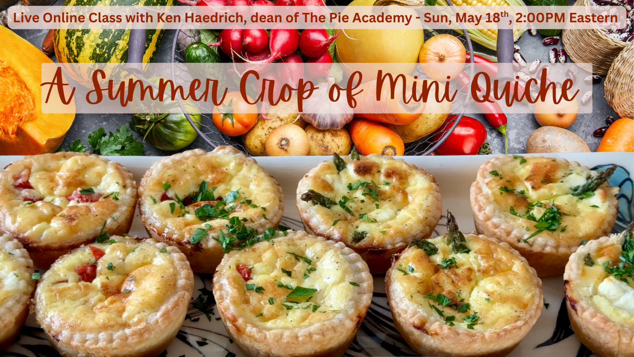 Homemade quiche is delicious; homemade mini quiches are delicious and adorable. AND they provide the perfect little package for showcasing seasonal produce all summer long, as Ken will demonstrate in this lively session. Using a variety of cheeses, fresh veggies and herbs, he'll show you how he prepares and bakes a trio of his summery favorites. He's certain you'll fall for these little hand-held quiches and reach for the recipes all summer long, when friends drop by or you need to bring along something special.